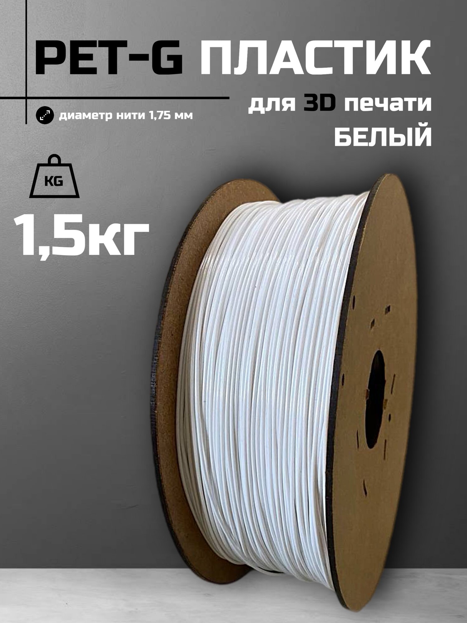 Пластик для 3D печати PETG, диаметр 1.75 мм "Белый", 1.5 кг. информация: