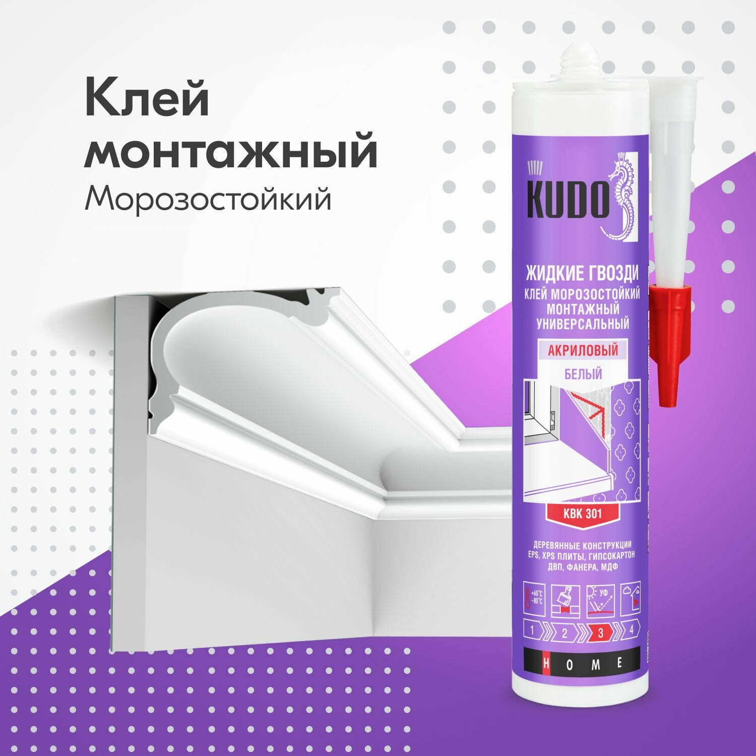 Клей "жидкие гвозди" KUDO DECOR для монтажа лёгкого декора на акриловой основе, белый, 280 мл, KBK-311