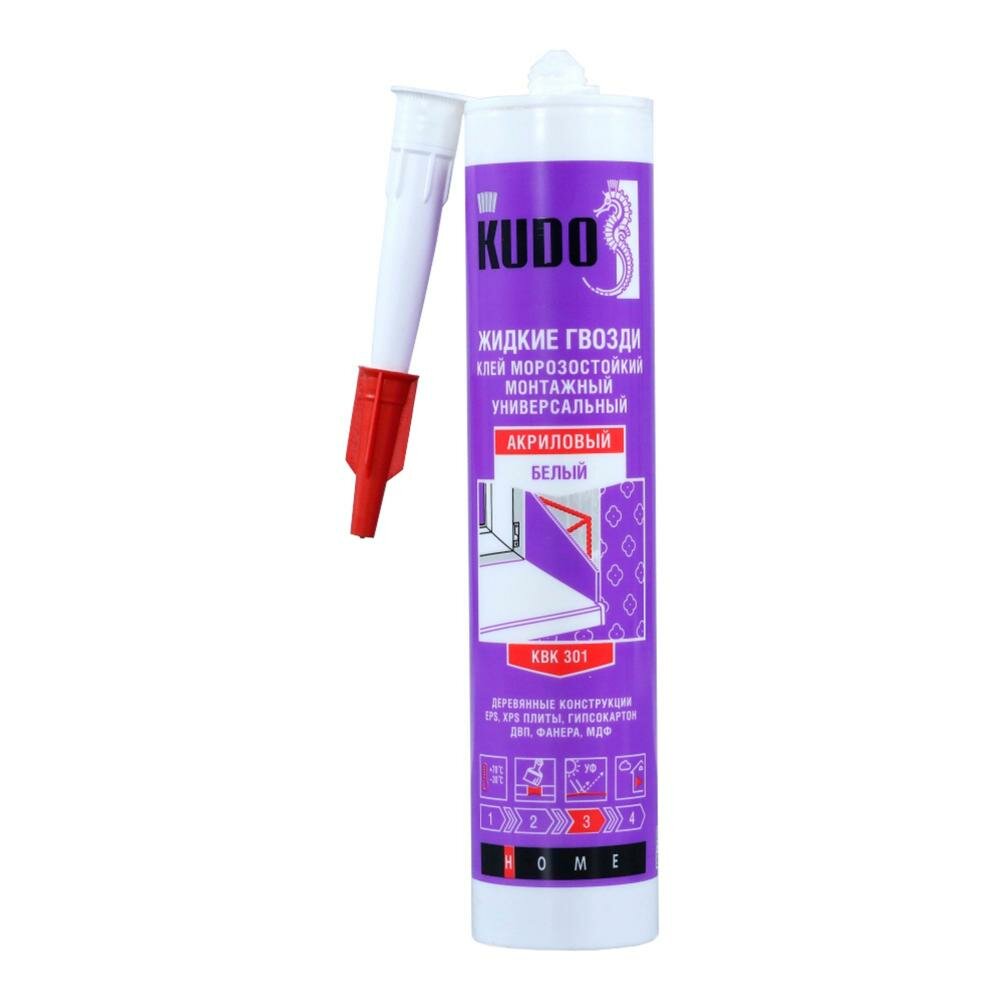 KUDO KBK-301 Клей KUDO монтажный Жидкие гвозди универсальный на акриловой основе морозостойкий белый 280 мл KUD KUDO KBK-301 700 ₽