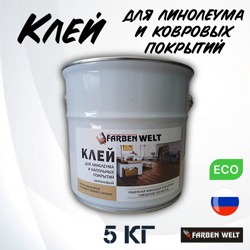 Клей FARBEN WELT, акриловый, для линолеума, напольных покрытий, 5 л информация: