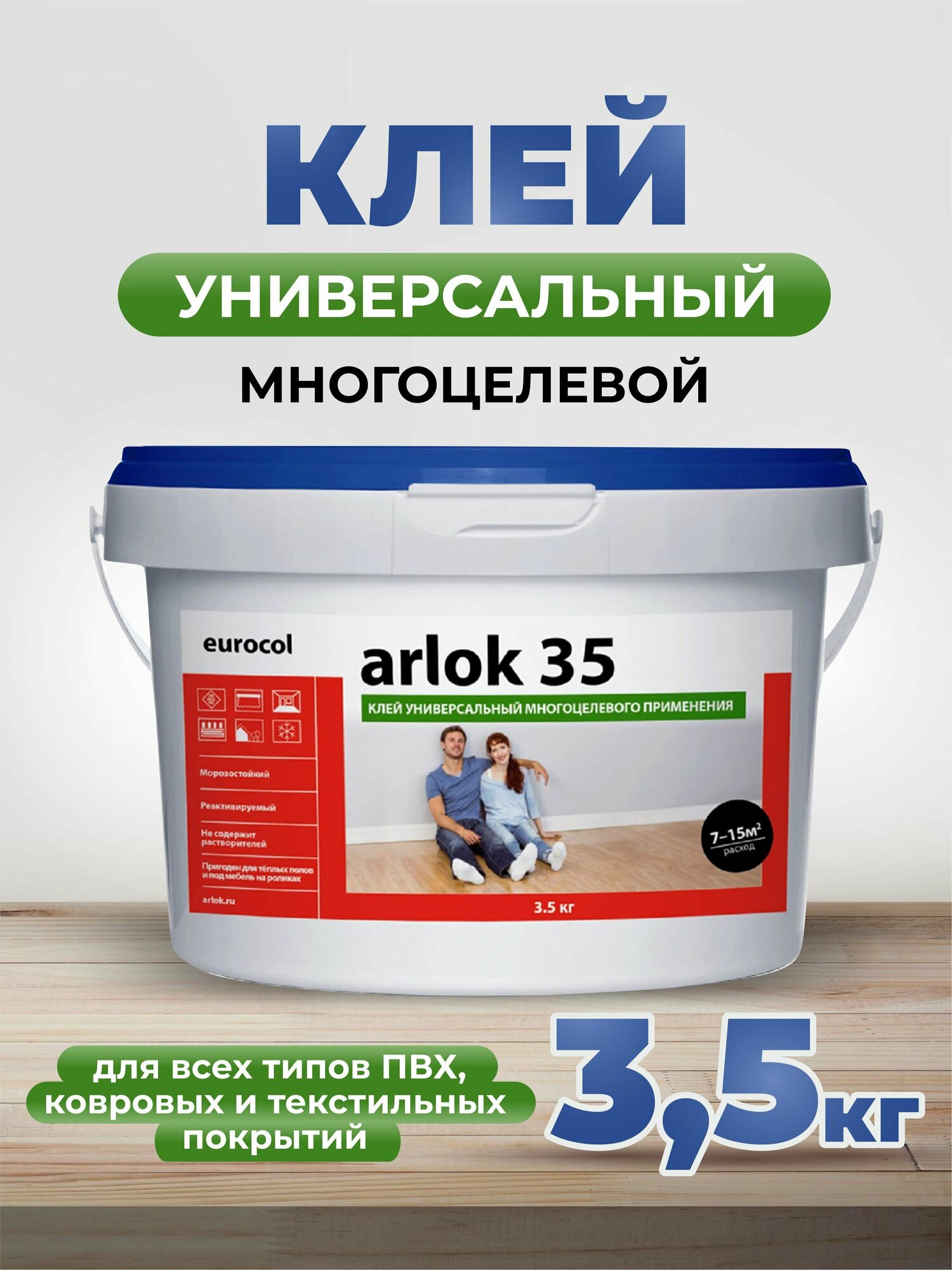 Клей Arlok 35 для ПВХ и ковровых покрытий универсальный 3.5 кг / Клей универсальный многоцелевой для всех видов ПВХ Eurocol Arlok 35 банка 3.5 кг 3 550 ₽