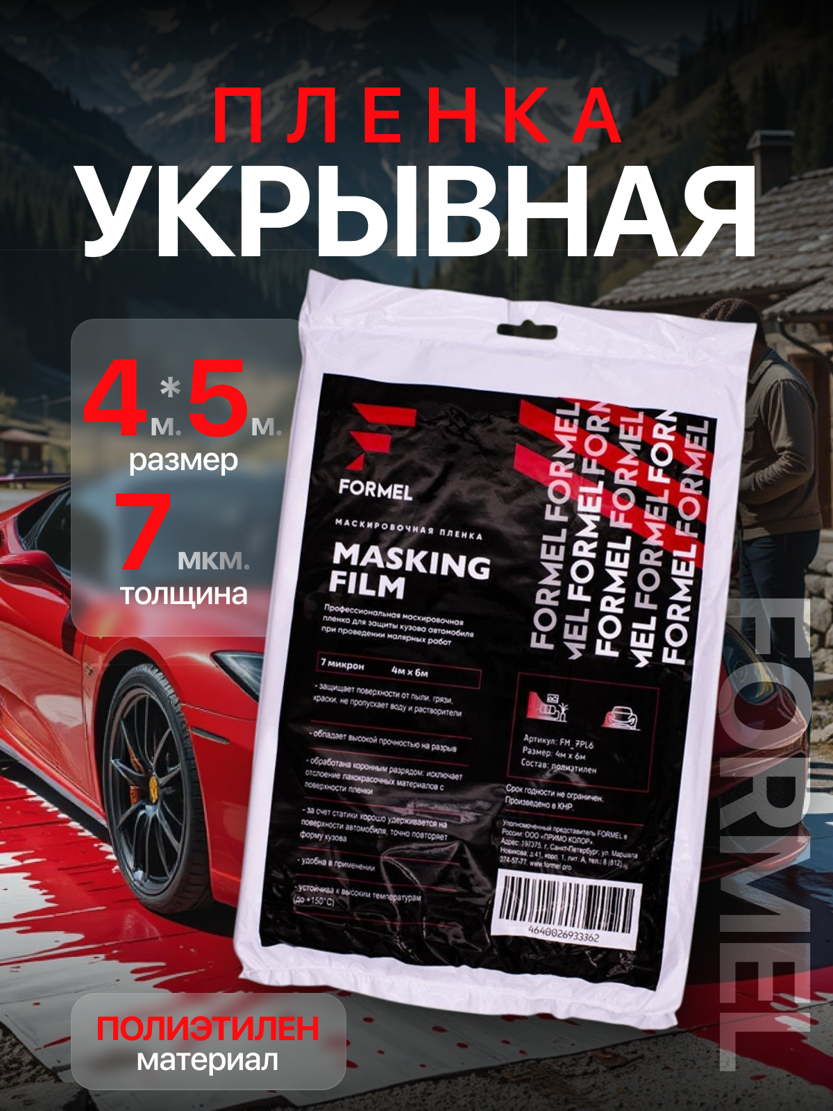 Укрывная плёнка FORMEL 4х5м, полиэтилен, плотность 7 мкм, надежная защита для вашего автомобиля информация: