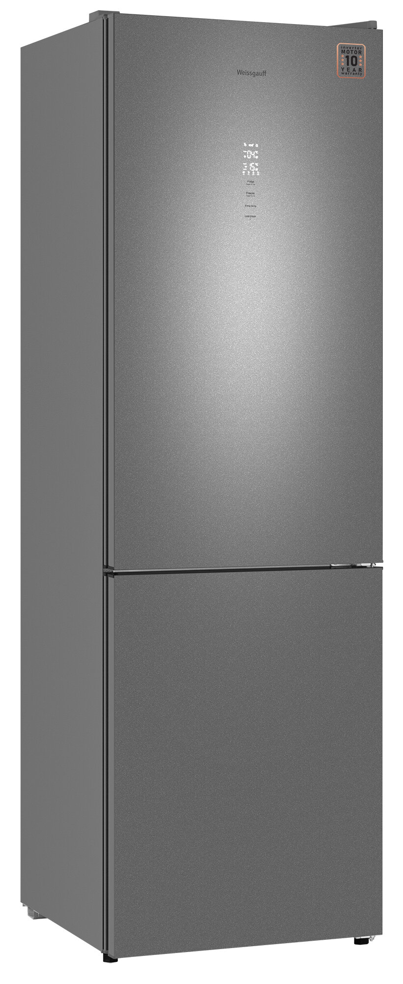 Отдельностоящий холодильник с инвертором Weissgauff WRK 2000 Total NoFrost Inverter Inox двухкамерный шириной 60 см, 3 года гарантии, Тихий режим 40 дБ, Полезный объём 342л, Электронное управление, Супер заморозка 15кг сутки, Зона свежести, А++ 65 910 ₽