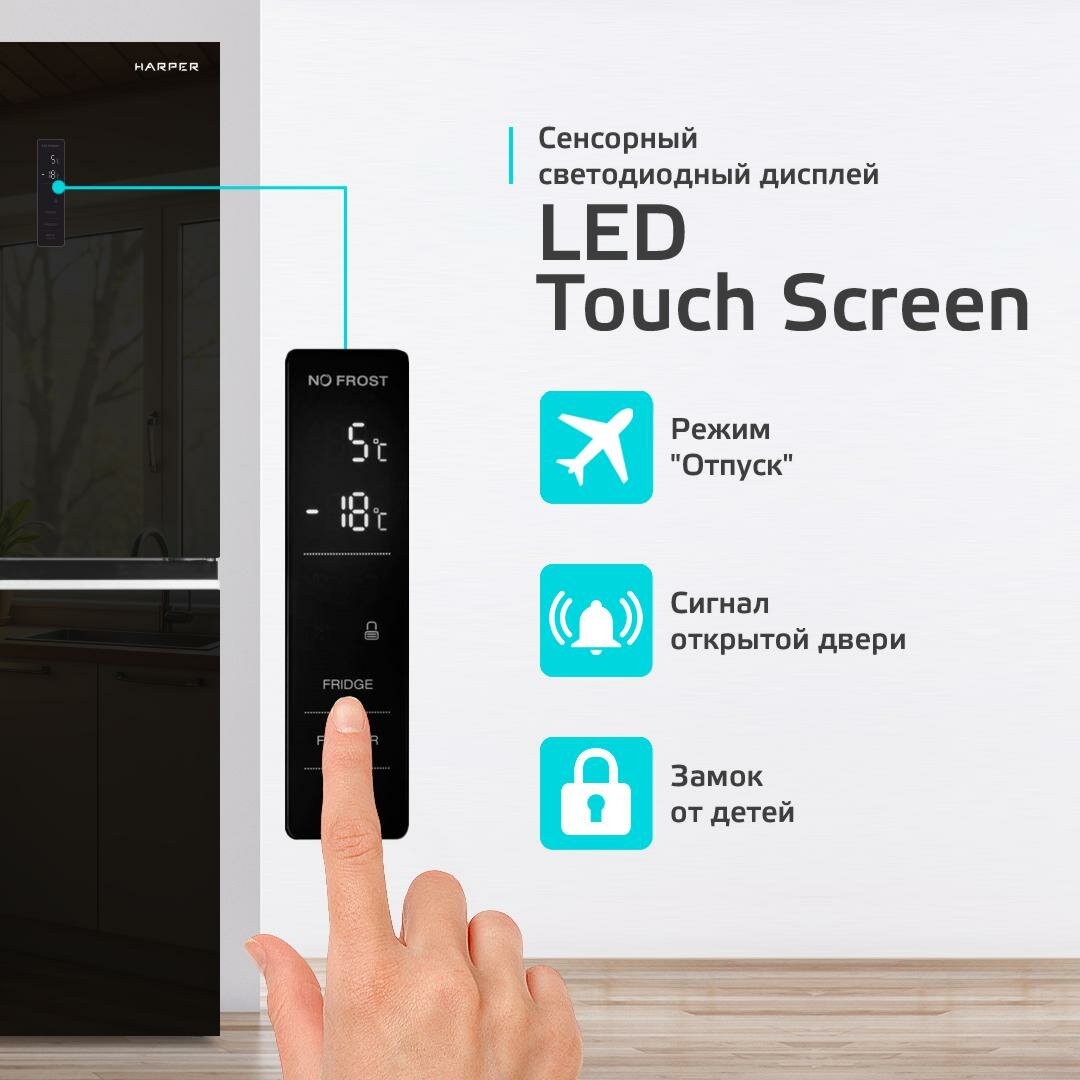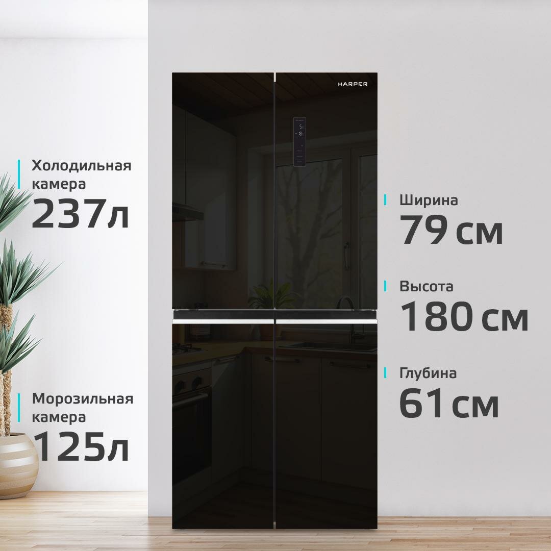 Холодильник трехкамерный 404 л / Total No Frost / А ++ / подарок женщине /инверторный, Harper RH6966BI, black glass информация: