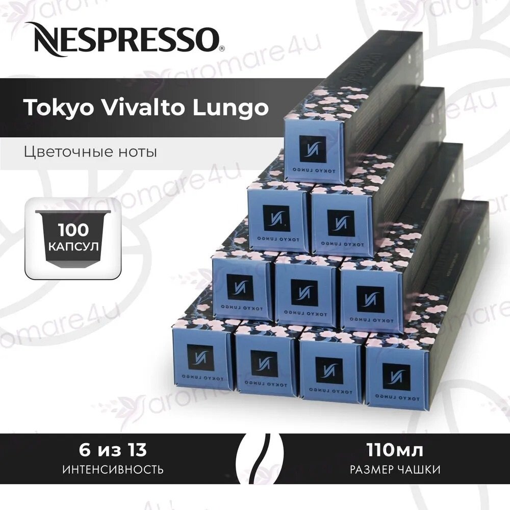 Кофе в капсулах, Nespresso, Tokyo Vivalto Lungo, 110ml, натуральный, молотый кофе в капсулах, для капсульных кофемашин, оригинал, неспрессо , 50шт 6 490 ₽