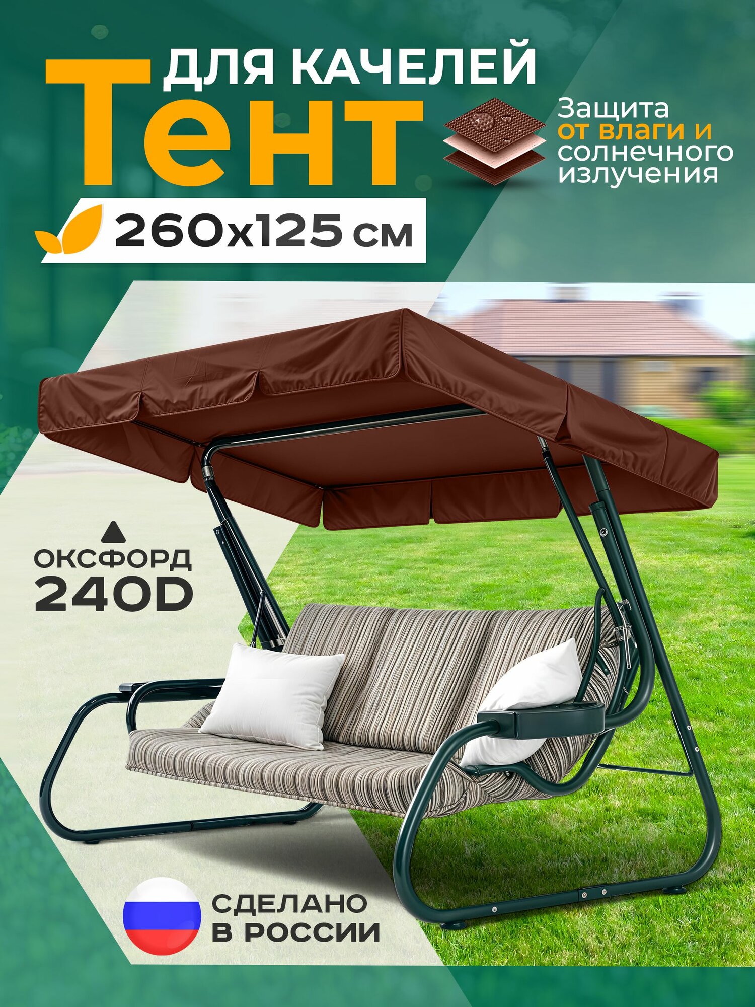 Тент Fler для садовых качелей (260х125см) коричневый, водонепроницаемый информация: