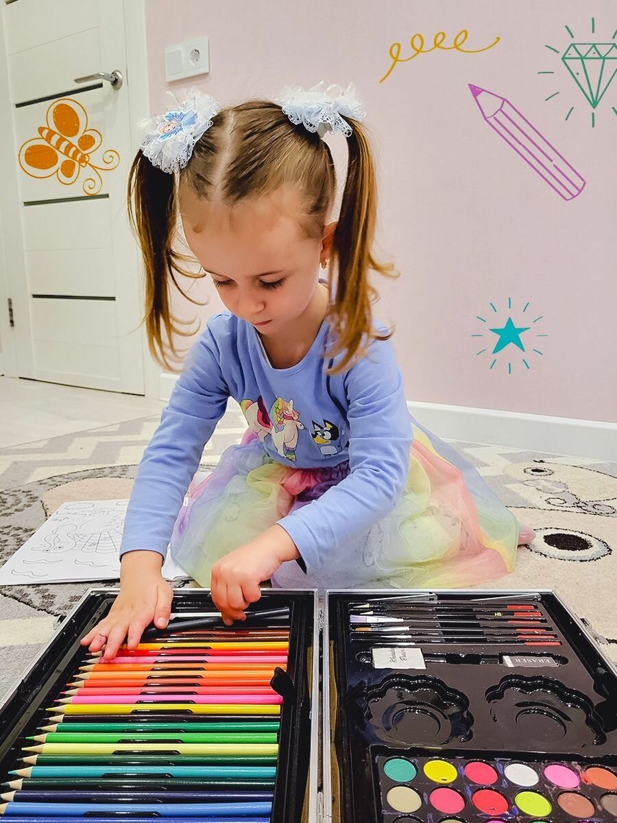 Отзывы на Набор для рисования и творчества в чемоданчике юного художника детский Play Okay - подарок девочке и мальчику 145 предметов