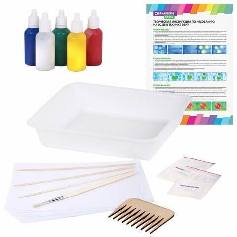 Эбру набор для рисования на воде 5 цветов по 20 мл (20 картин), лоток А5, BRAUBERG HOBBY, 665353 (арт. 665353) информация: