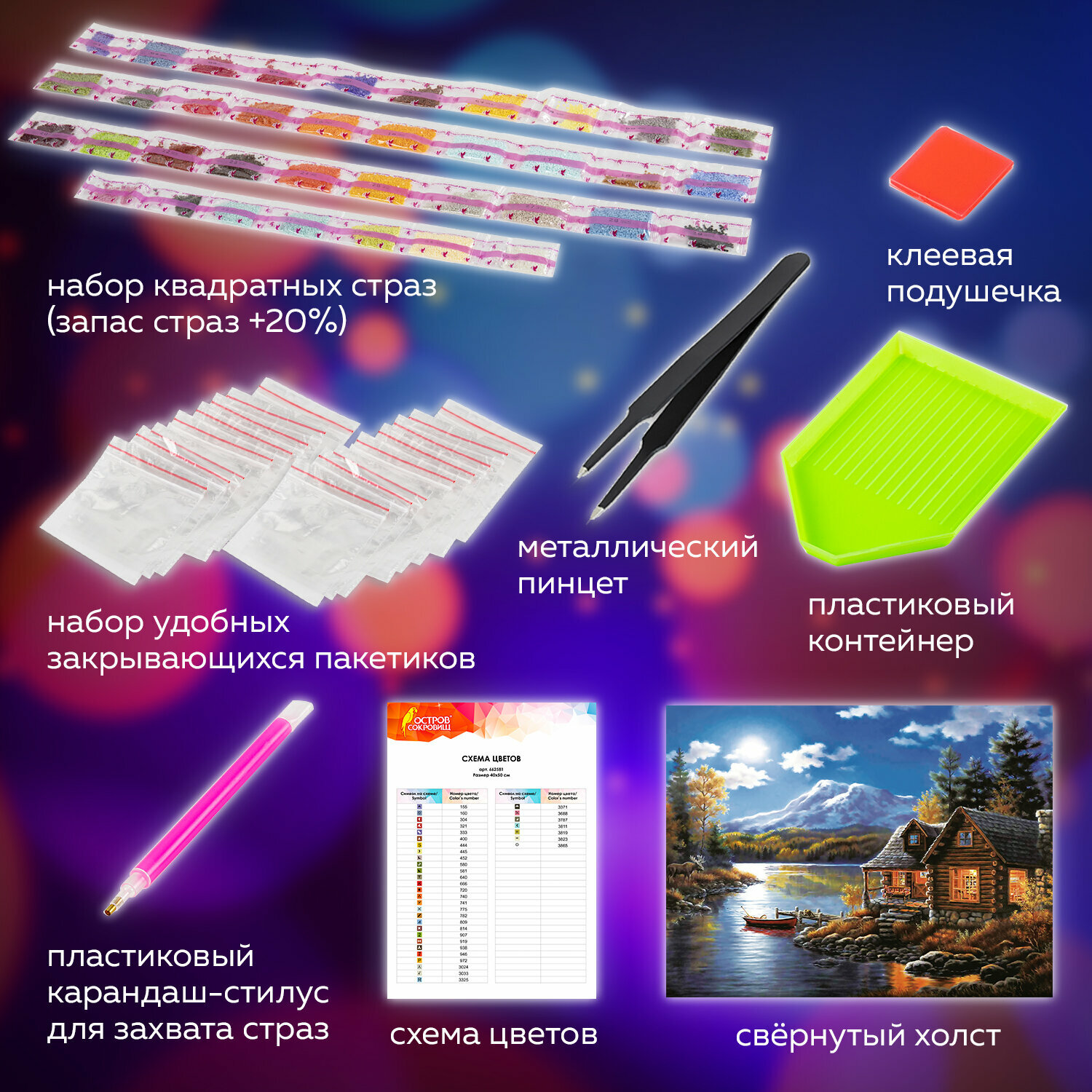 | Комплектация | холст, стразы, контейнер, стилус, клеевой квадрат, пинцет, схема |