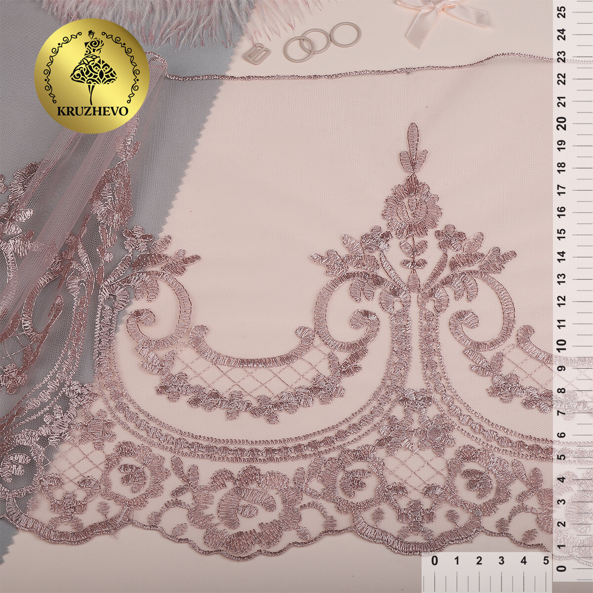 Кружево на сетке KRUZHEVO, арт. TBY.40470, 230мм, цвет 6615 розовая пудра, уп.13,71м информация: