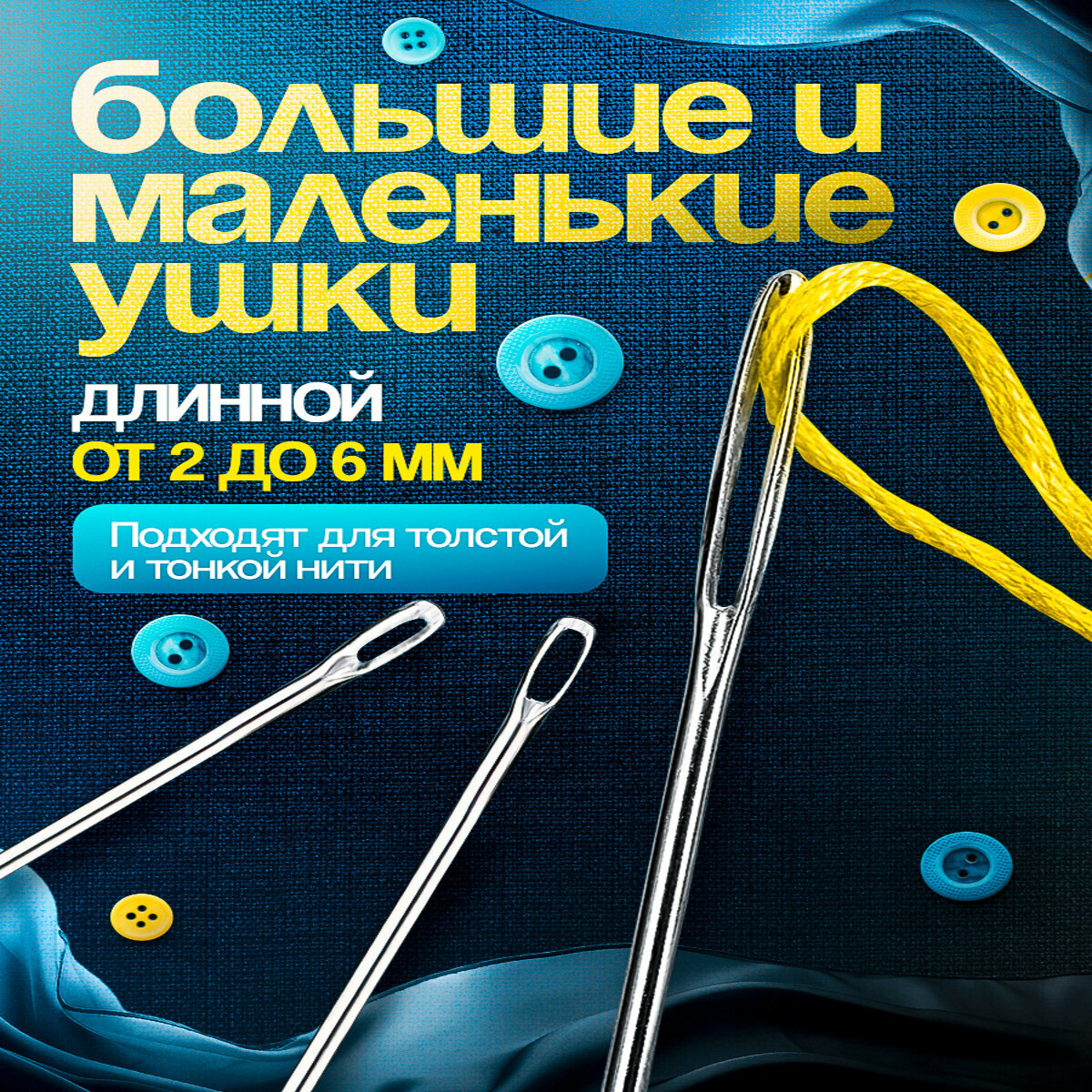 Иглы для шитья с большим ушком, портновский набор для рукоделия / иголка / 20 штук 158 ₽
