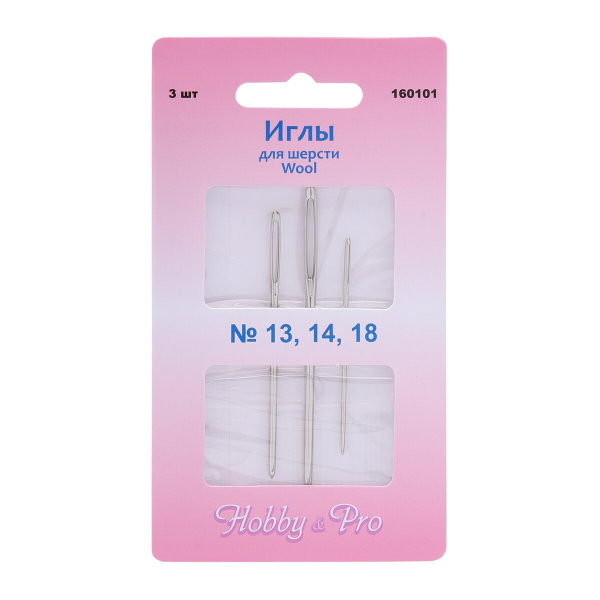 Иглы с большим ушком для пряжи и шерсти Hobby&Pro Wool № 13, 14, 18, 3 шт, ручные информация:
