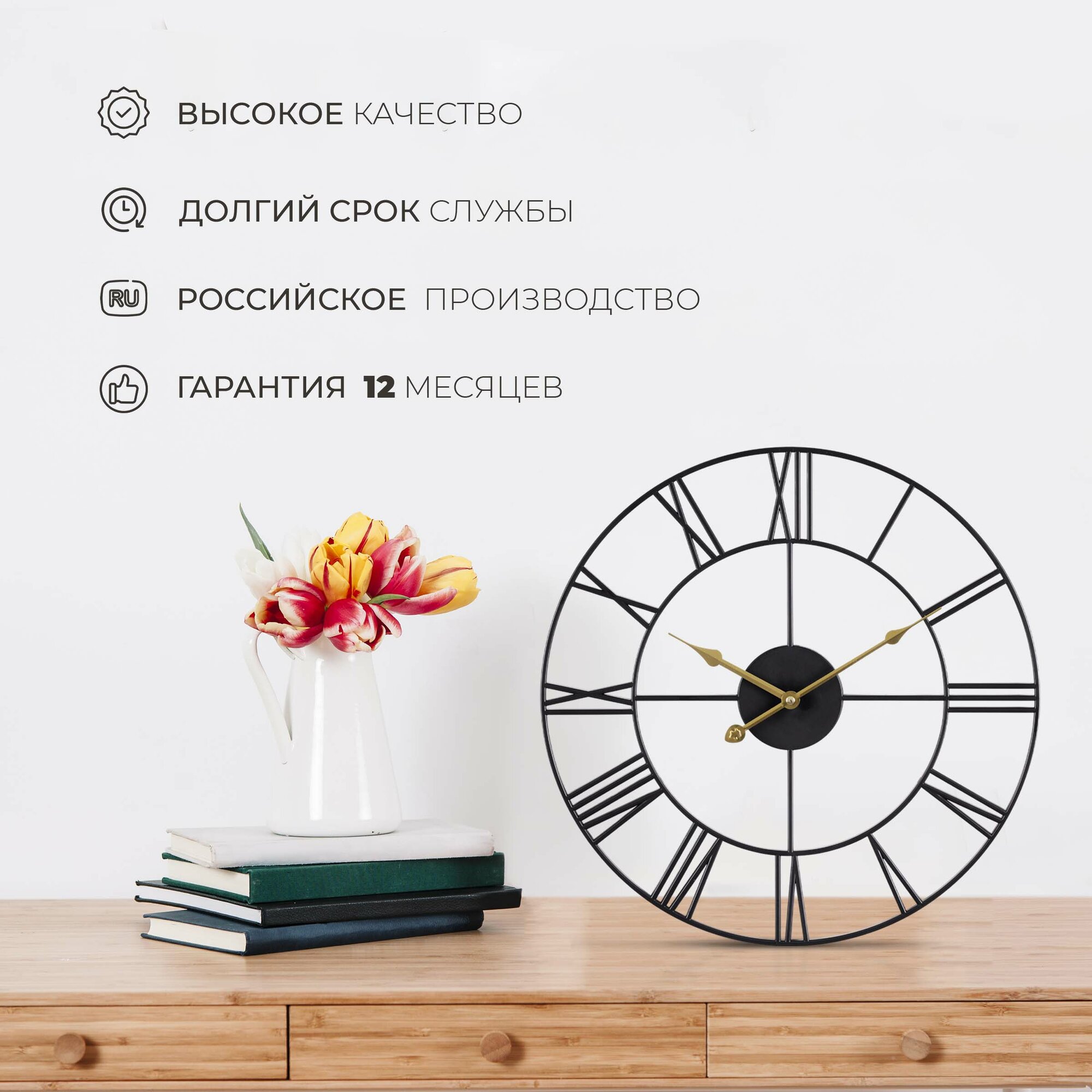 Рубин Часы настенные круглые 40 см, большие Римские цифры кварцевые 1 187 ₽