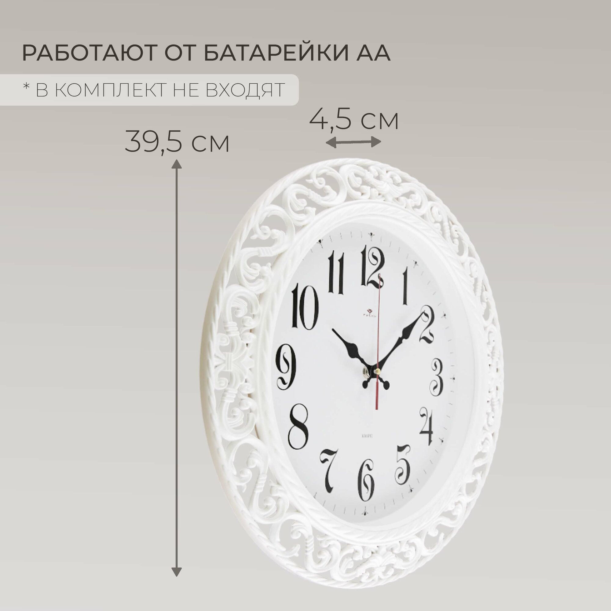 Часы настенные ажурные Рубин, 38см большие кварцевые, белые с плавным ходом 999 ₽