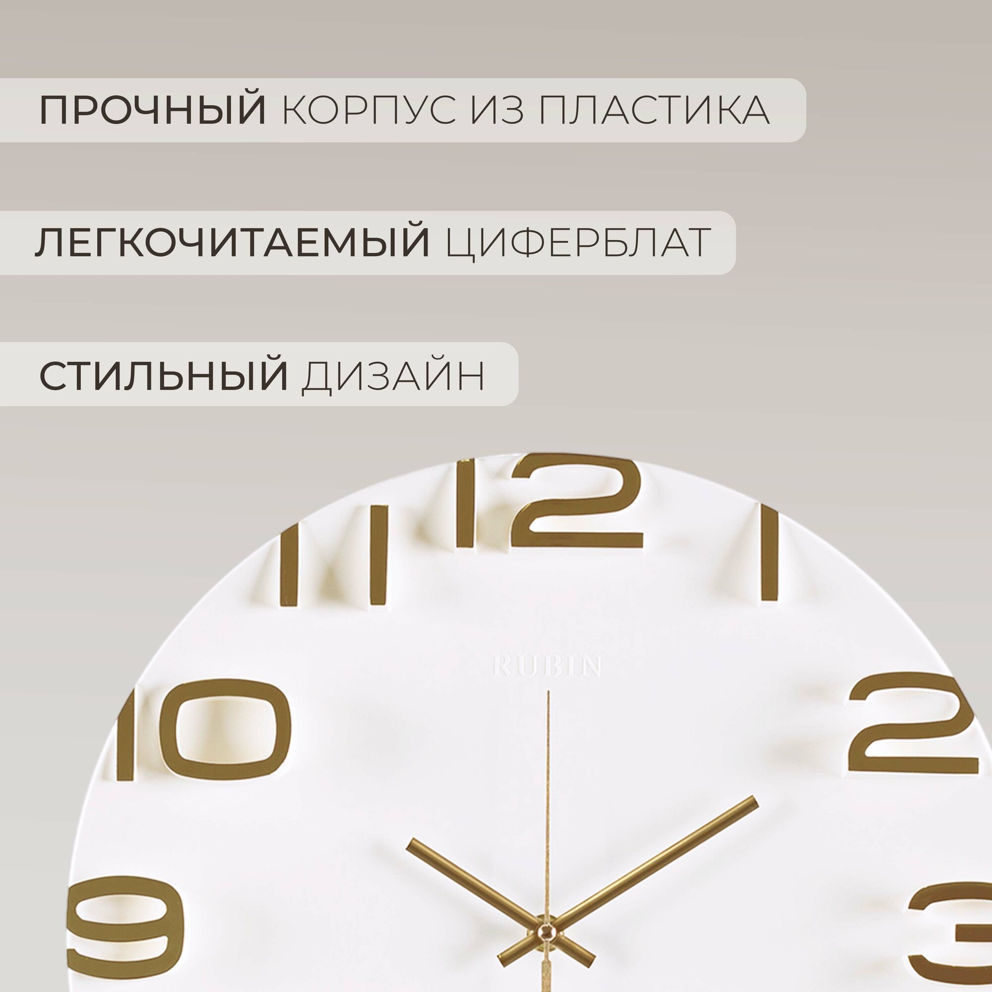 Стильные кварцевые часы в круглом корпусе Рубин Классика 3524-007 35 см с большими арабскими цифрами для украшения интерьера гостиной, спальни, кухни или офиса