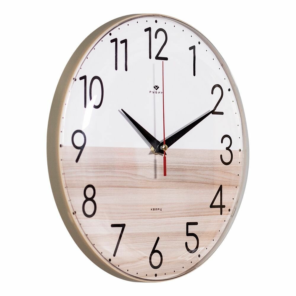 Часы настенные интерьерные "Рубин" круг d=25см, основание бежевое "Текстура дерева", кварцевый механизм 820 ₽