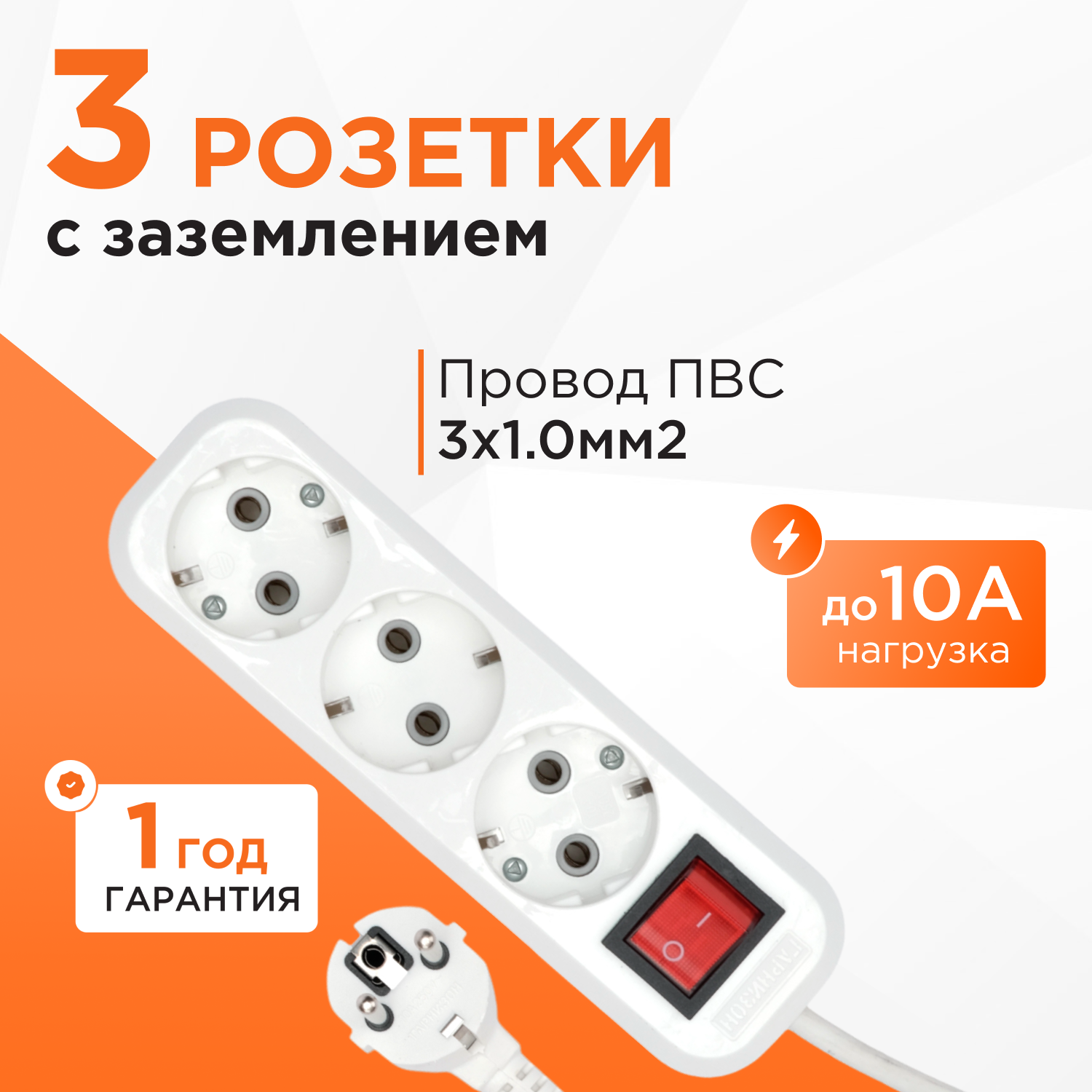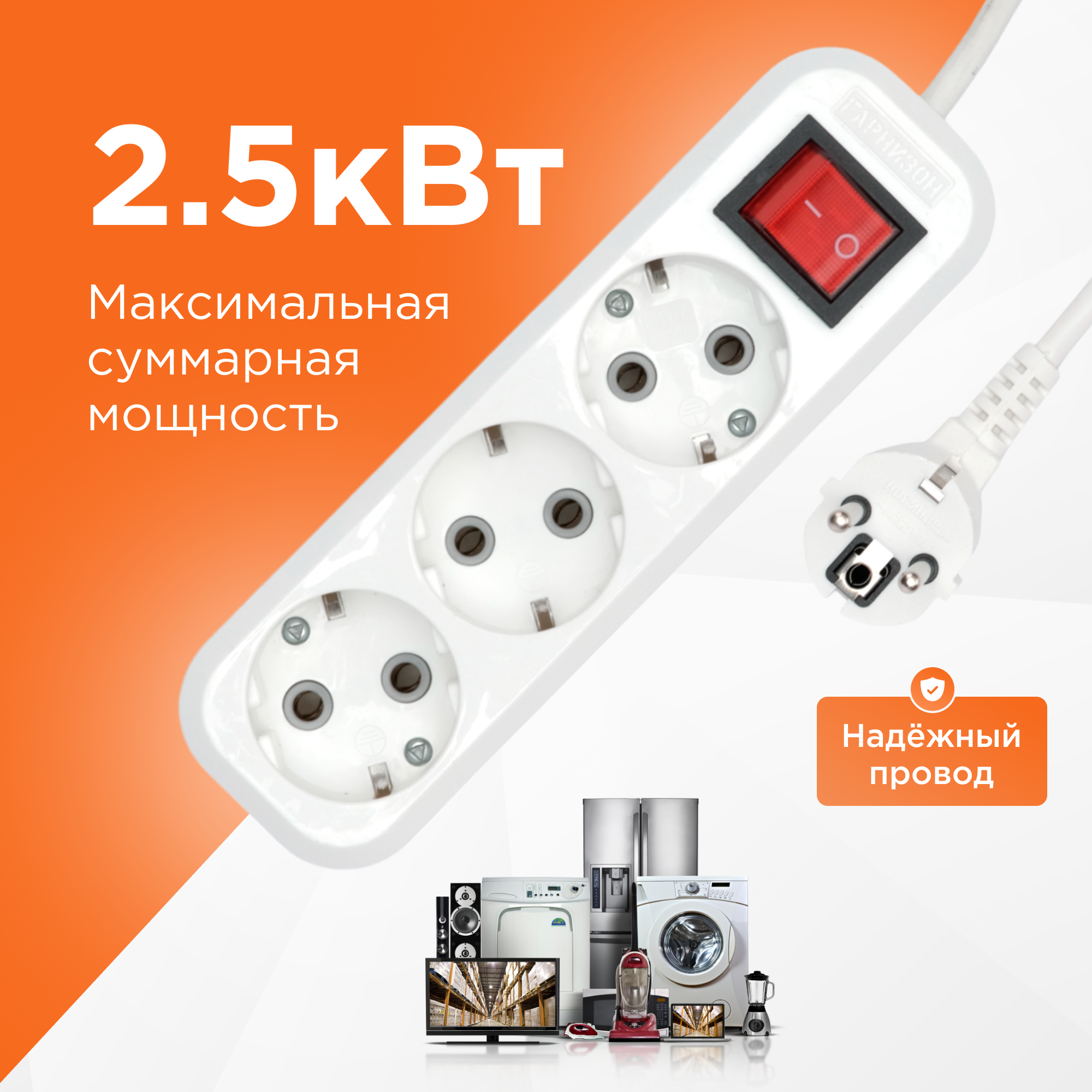 Удлинитель Гарнизон белый 10А 5м с выключателем и заземлением 1 уровнем защиты EPB-G3-W-5 информация:
