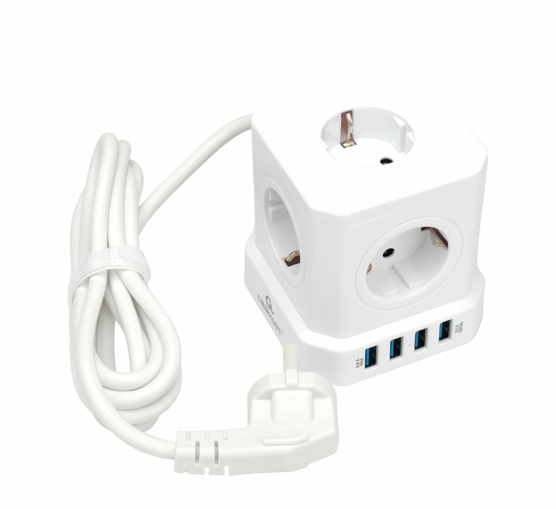 Сетевой фильтр Cablexpert Cube, 3 розетки, 4хUSB, 1.5м, белый, коробка 1 640 ₽