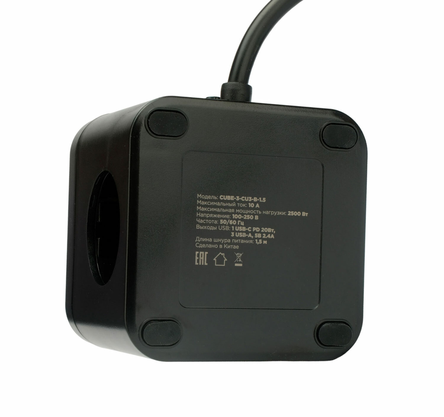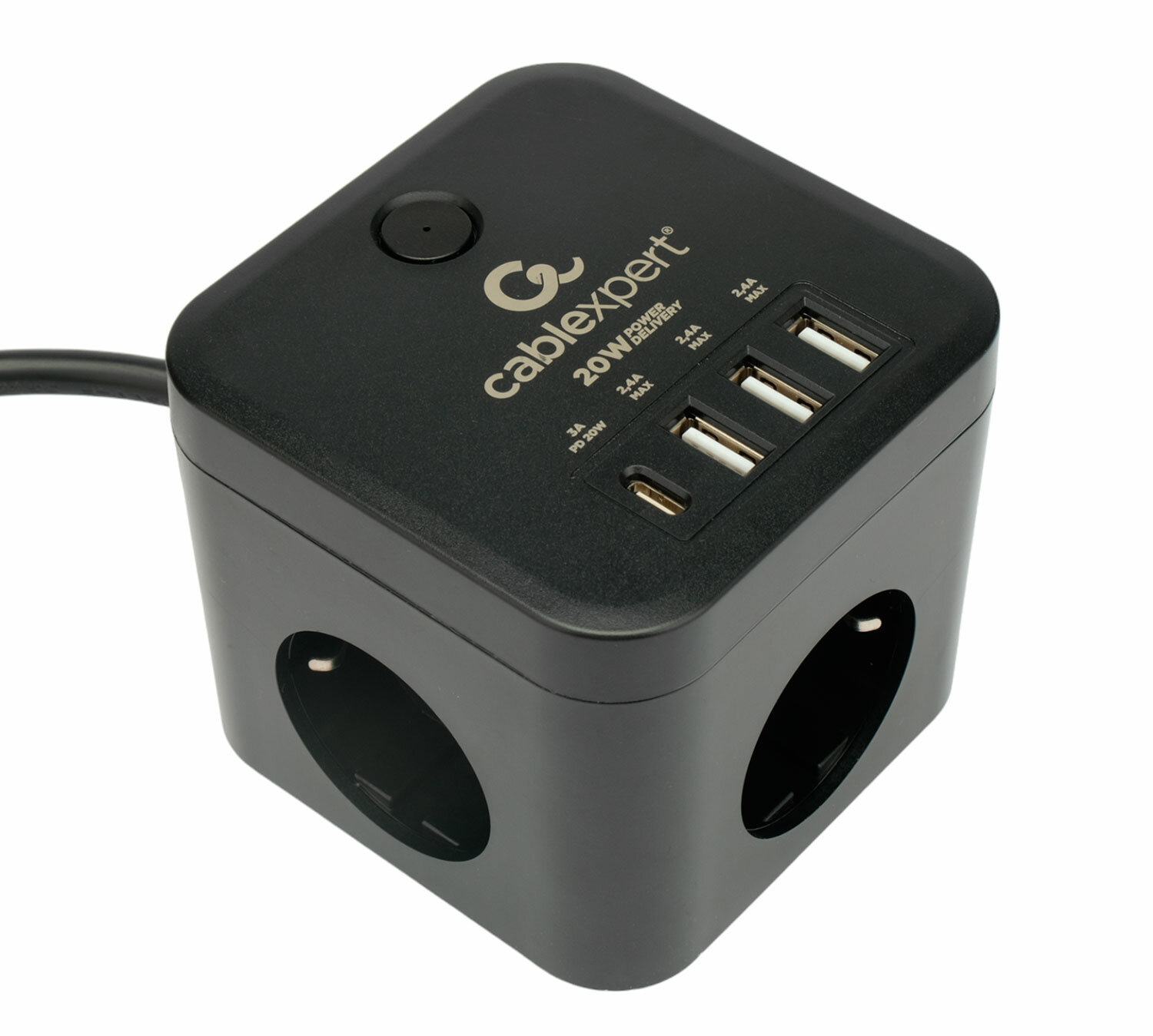 Отзывы на Сетевой фильтр Cablexpert Cube, 3 розетки, 1xType-C, 3xUSB, 1.5м, черный, коробка