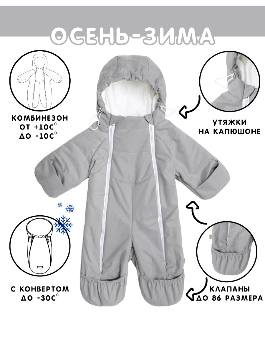 Комбинезон утепленный для новорожденного Royal Felle Easy Grey (серый) размер 59 для новорожденных демисезонный осень зима