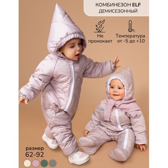 Комбинезон демисезонный Amarobaby ELF AB-OD23-6201EL-40-80 детский, цвет лавандово-серый, размер 80 4 685 ₽