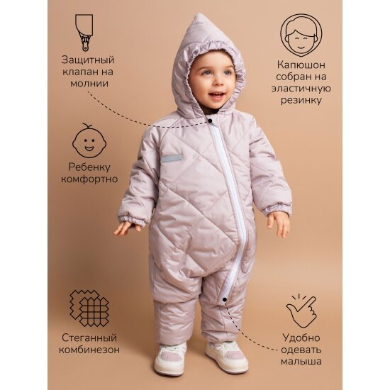 Комбинезон детский демисезонный стеганый с закрытыми ножками Amarobaby ELF, лавандово-серый, размер 68 4 624 ₽