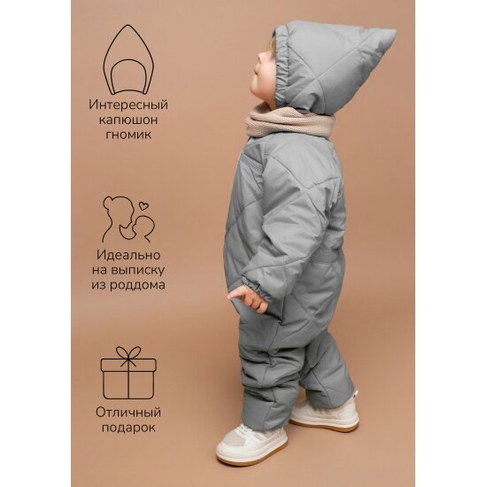 Комбинезон детский демисезонный стеганый с закрытыми ножками Amarobaby ELF, серый, размер 68 4 966 ₽