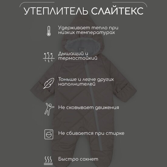 Комбинезон детский демисезонный стеганый с закрытыми ножками Amarobaby ELF, лавандово-серый, размер 62 4 624 ₽