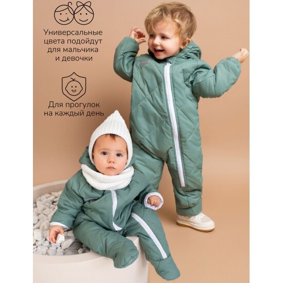 Комбинезон детский демисезонный стеганый с закрытыми ножками Amarobaby ELF, мятный, размер 68 4 966 ₽