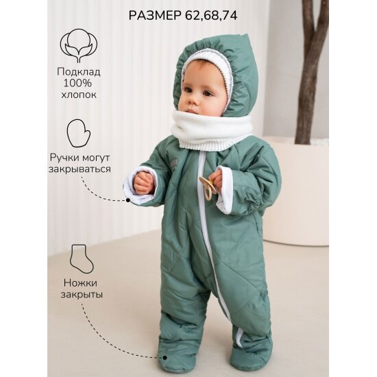 Комбинезон демисезонный Amarobaby ELF AB-OD23-6201EL-32-62 детский, цвет мятный, размер 62 4 685 ₽