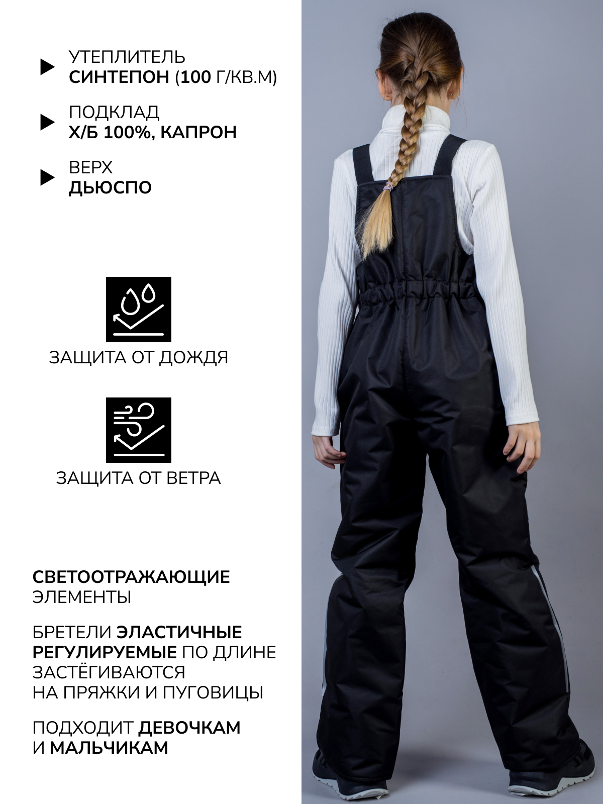 Полукомбинезон детский демисезонный непромокаемый черный 110 2 050 ₽