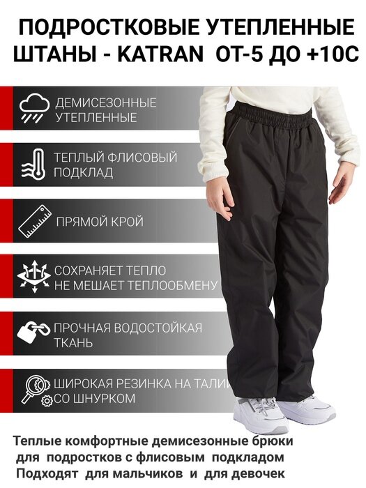 Брюки KATRAN Young непромокаемые на флисе, размер 128-134, , черные информация: