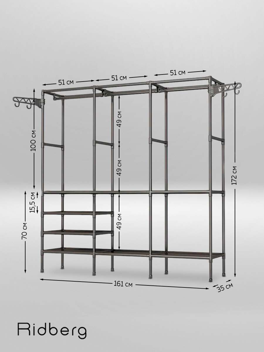 Вешалка напольная для одежды Ridberg металлическая прихожая, гардеробная система в коридор 1 139 ₽