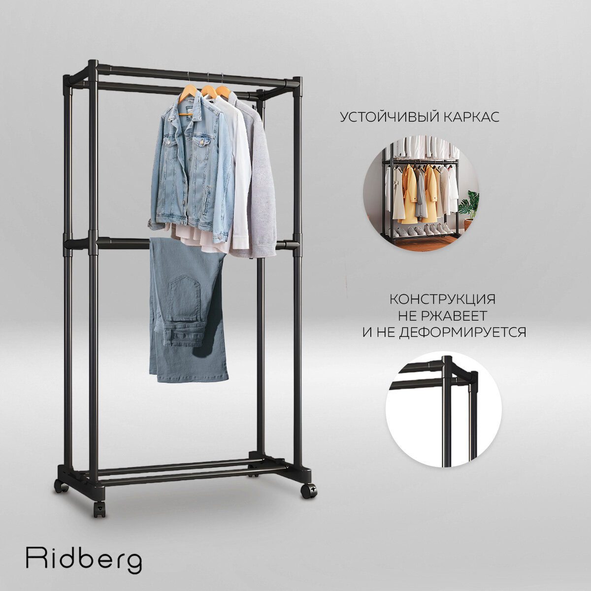 10 цен на Вешалка Ridberg Black, напольная, рейл двойной, черная, металлическая, 170 см