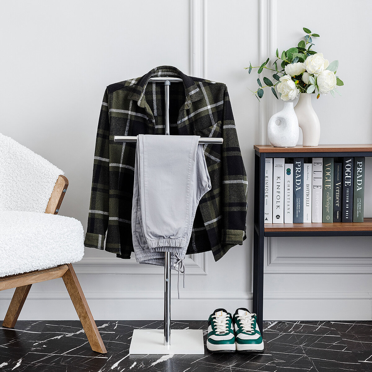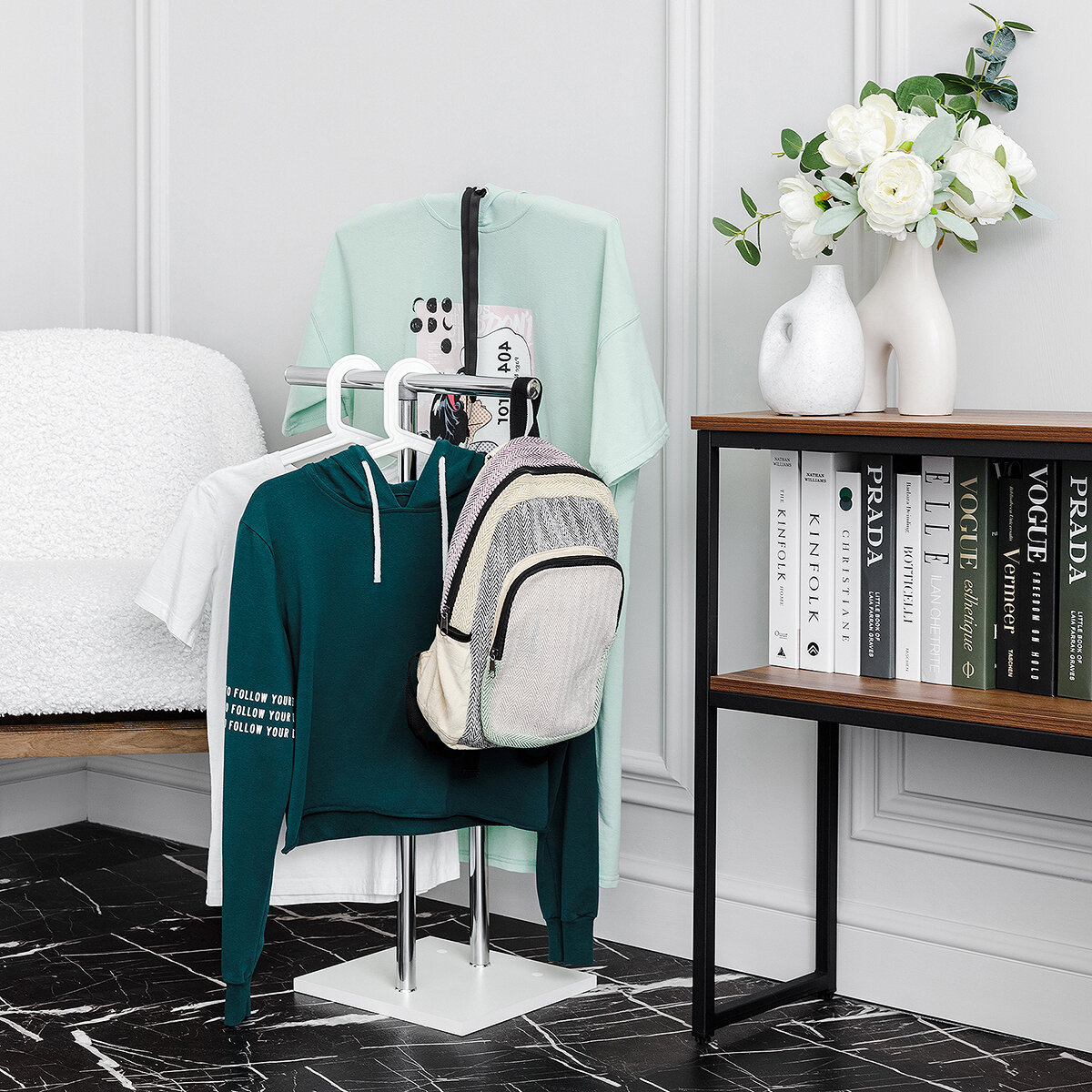 10 цен на Вешалка напольная – Металлическая ЛОФТ для одежды в спальню, прочная и устойчивая белая