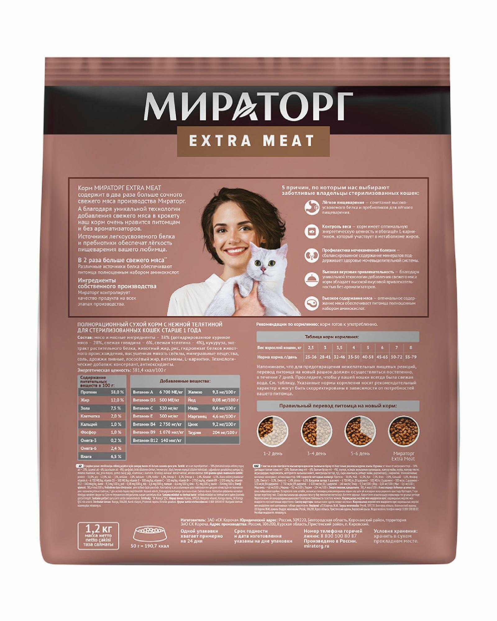 Корм Мираторг Extra Meat для стерилизованных кошек, с телятиной, 1.2 кг