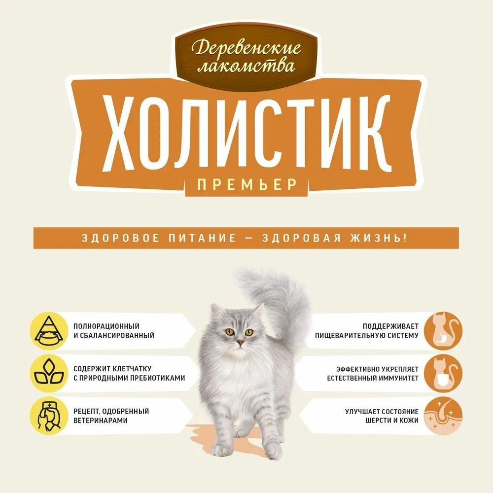 2кг+2кг Сухой полнорационный корм деревенские лакомства холистик премьер для поддержки иммунитета кошек с говядиной 3 900 ₽