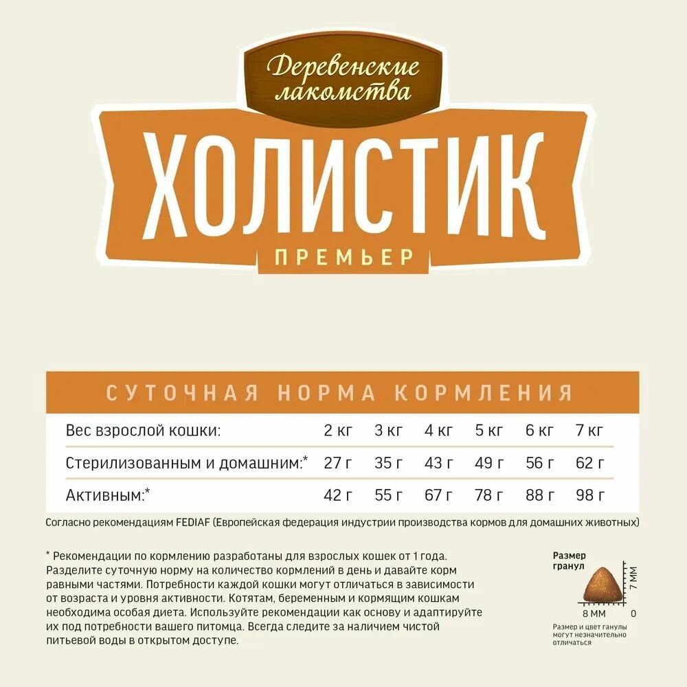 Деревенские лакомства: Холистик Премьер, индейка, сухой корм при чувствительном пищеварении кошек, 2 кг