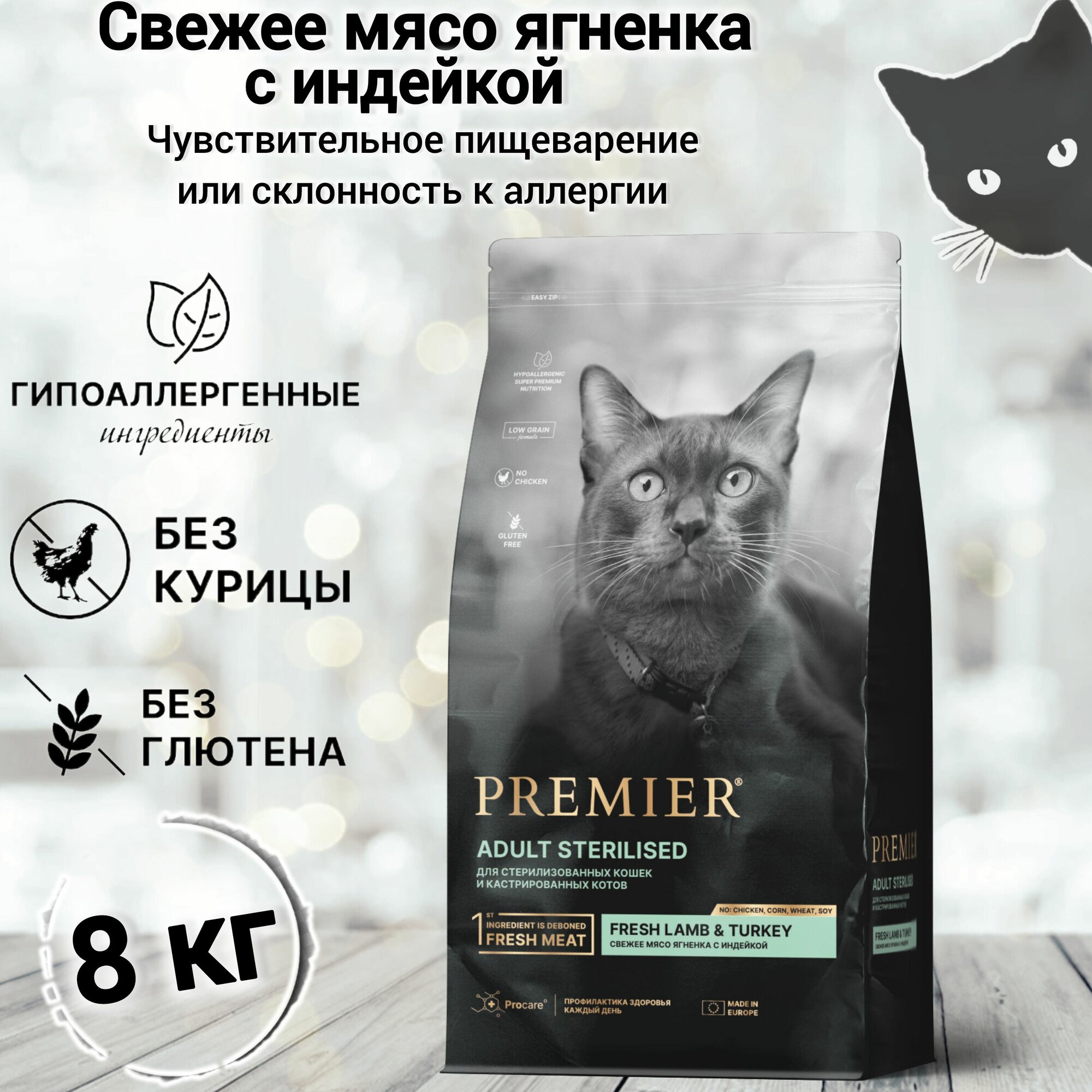 Premier Cat Lamb&Turkey STERILISED (Свежее мясо ягненка с индейкой для кошек) (8 кг) информация: