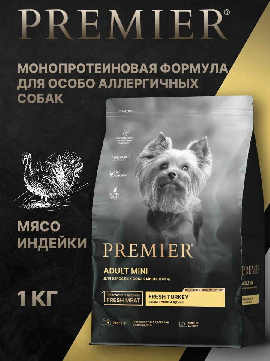 10 цен на Сухой корм для собак Premier Dog Turkey ADULT Mini для собак мелких пород, с индейкой 1 кг