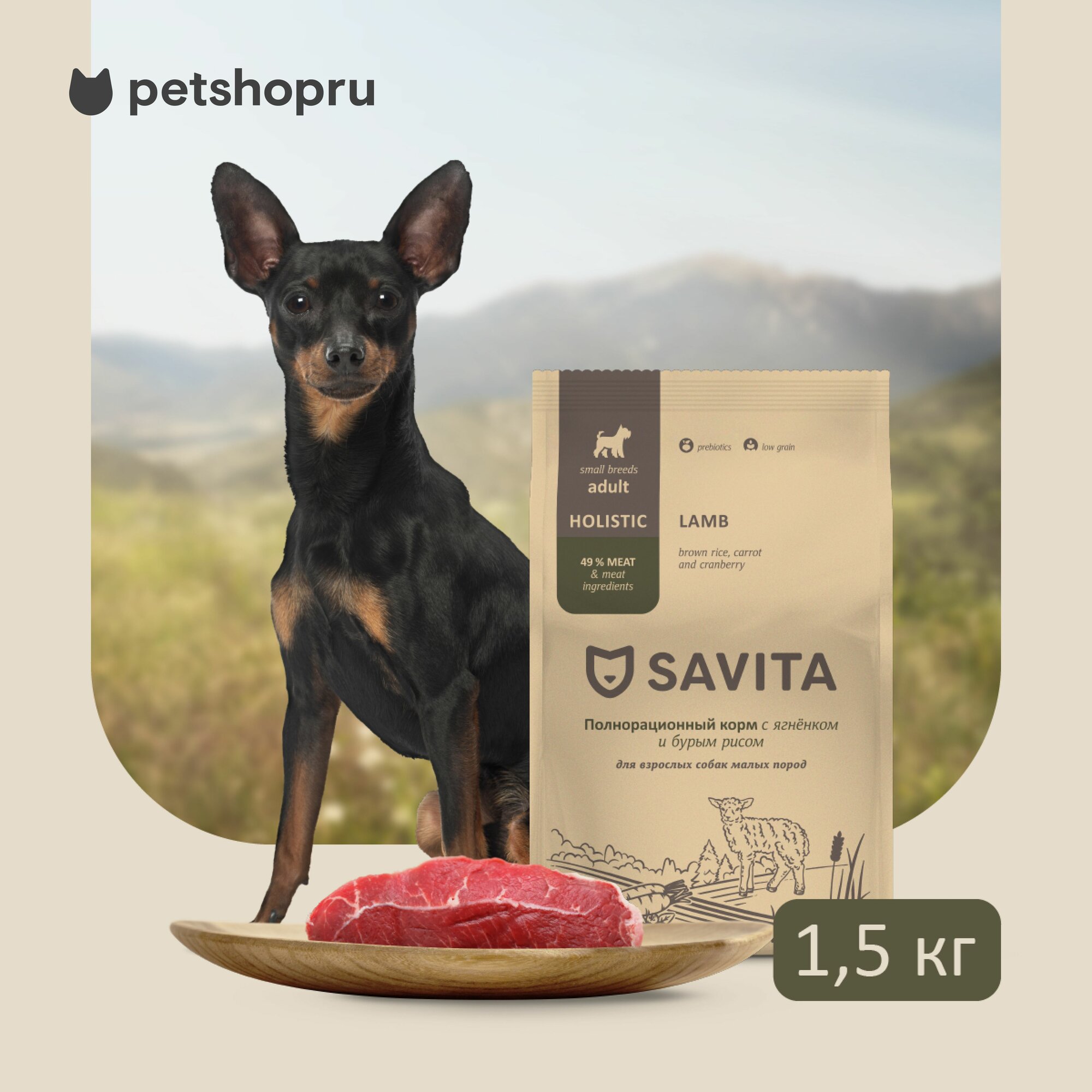 SAVITA для взрослых собак малых пород с ягненком и бурым рисом,1.5кг 1 300 ₽