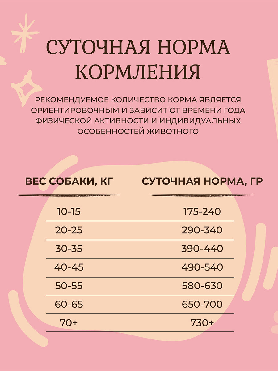 | Возраст животного | взрослые (1-6 лет) / пожилые (7+) / щенки (до 1 года) |