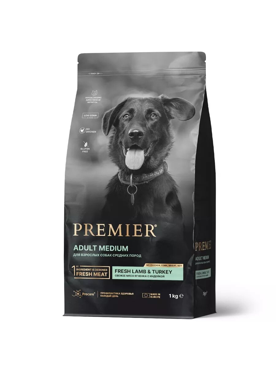 Сухой корм Premier для взрослых собак средних пород с нормальной активностью, чувствительным пищеварением или склонных к аллергии, с ягненком и индейкой, 1 кг 1 400 ₽