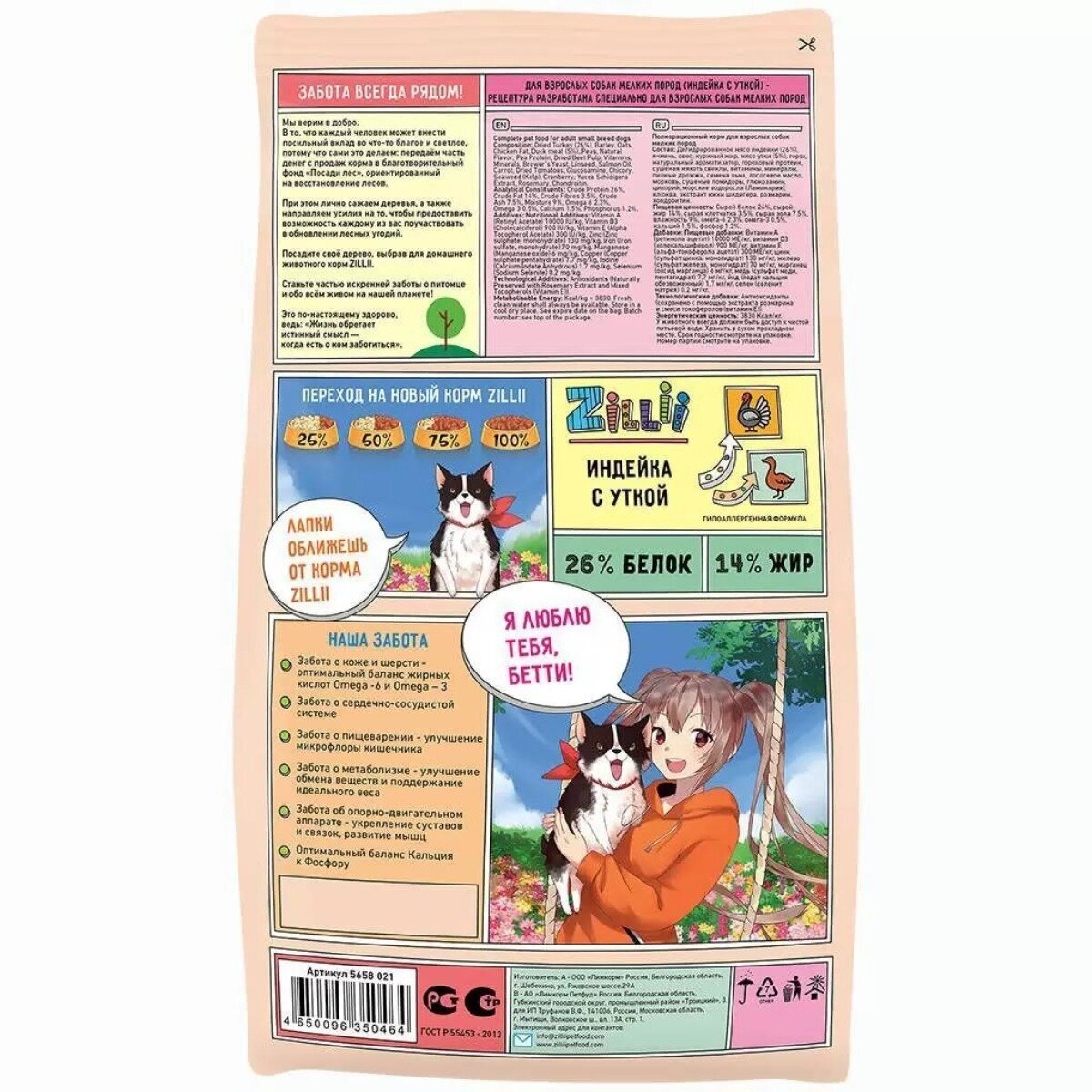Корм сухой Zillii Adult Dog Small Breed для взрослых собак мелких пород Индейка с Уткой, 15 кг информация: