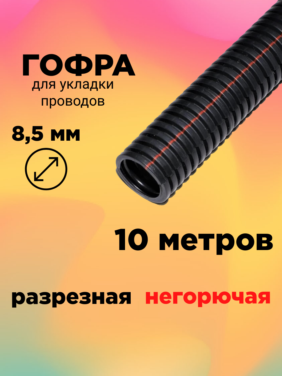 10 метров - Гофра автомобильная разрезная 8.5мм негорючая информация: