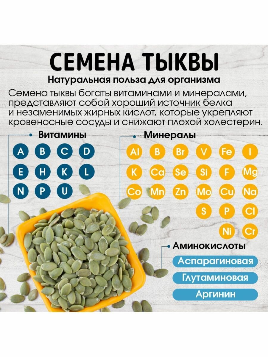 Тыквенные семечки 1000 г. BIO. Семена тыквы очищенные информация:
