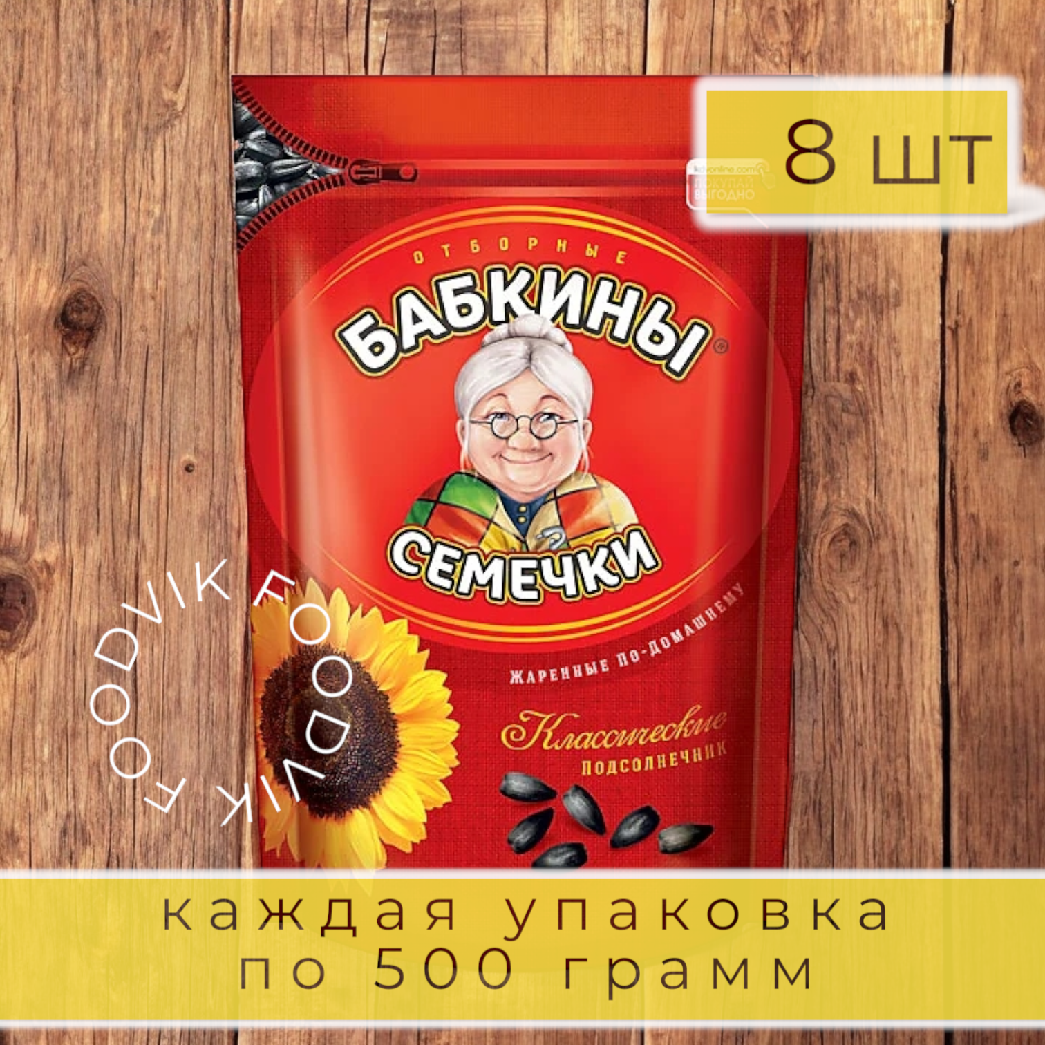 10 цен на «Бабкины семечки», семечки отборные, жареные, 8шт х 500г