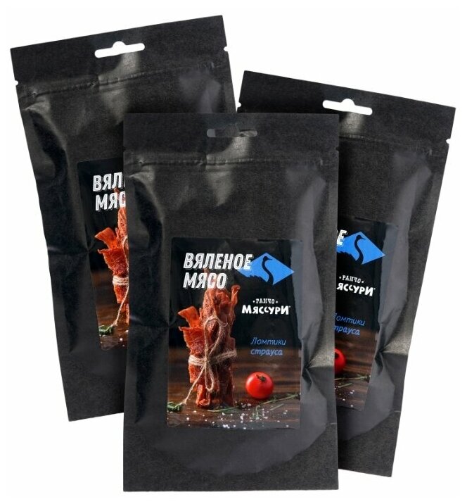 Вяленое мясо Ранчо Мяссури Ломтики Страуса, 3х50гр информация: