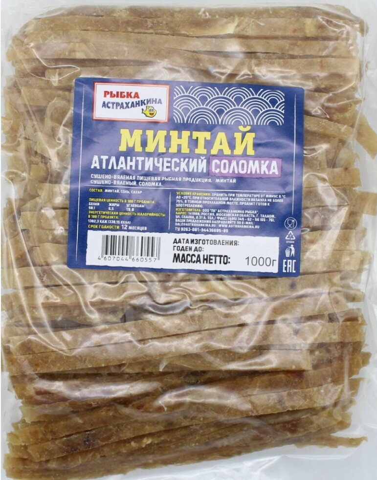 Отзывы на Минтай солено-сушеный "Астраханкина рыбка", соломка 1,0 кг флоупак