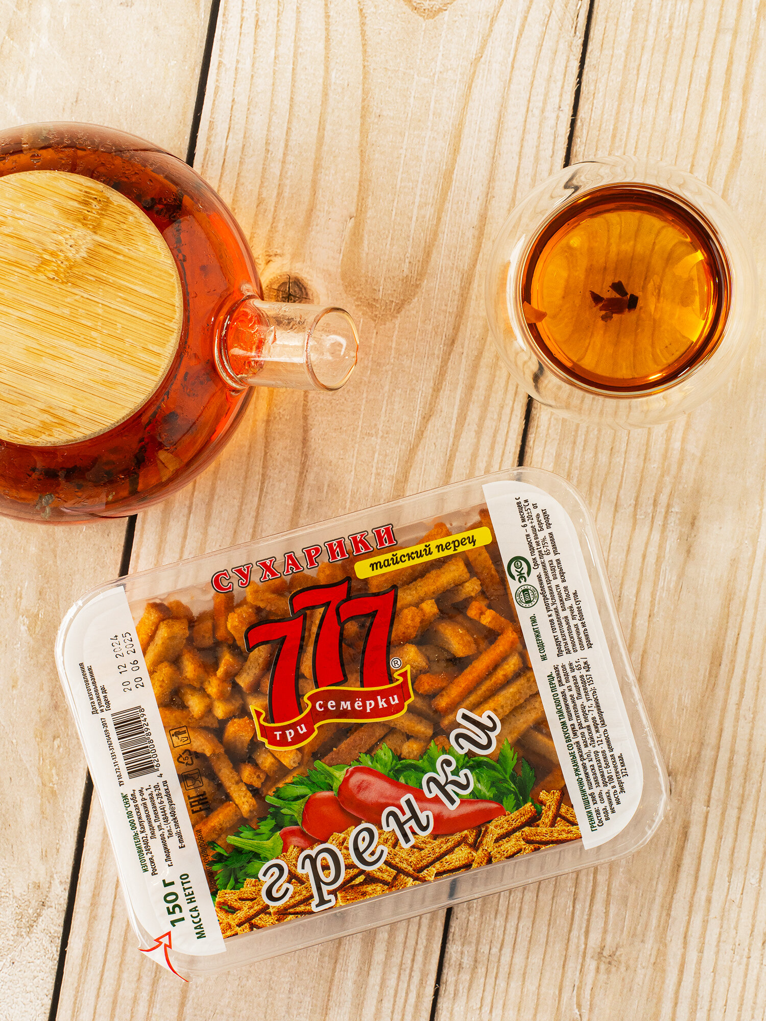 Сухарики Гренки 777 со вкусом тайского перца (контейнер), 12 шт по 150 гр информация: